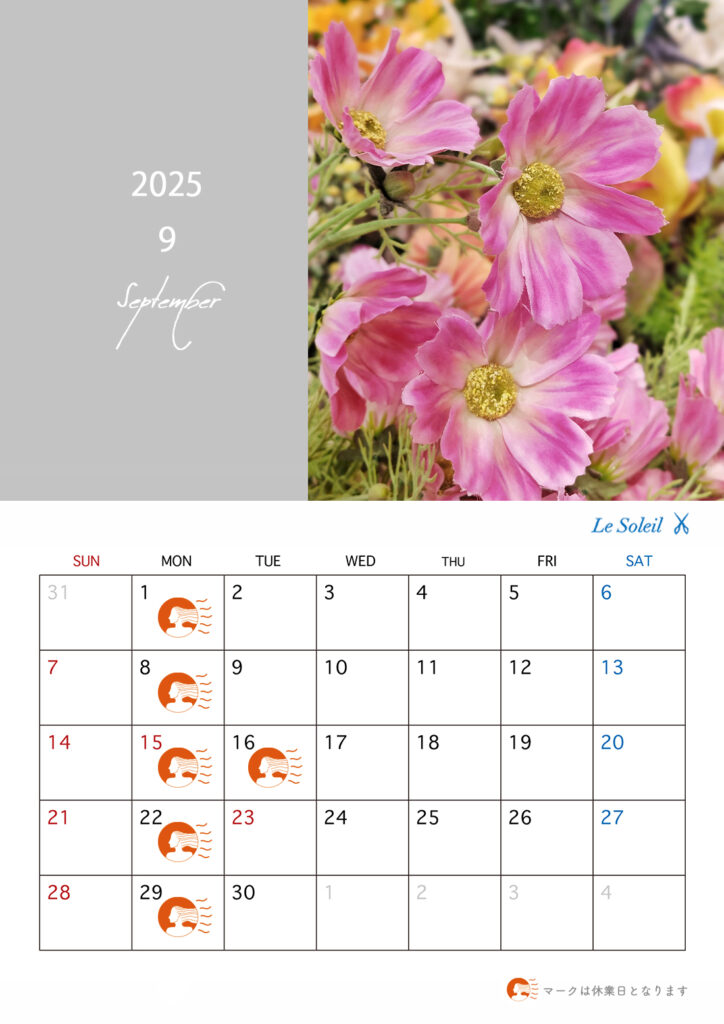 9月定休日のお知らせです。